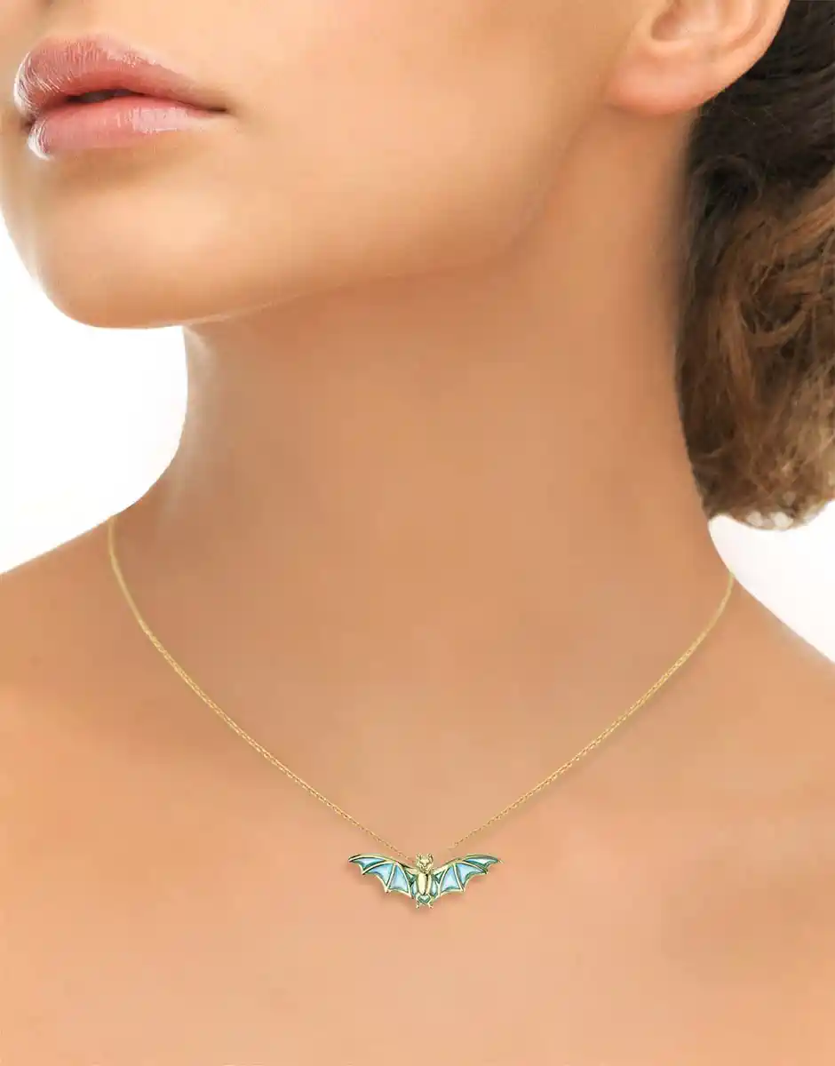 / Blue Plique-a-Jour Bat Pendant -18K
