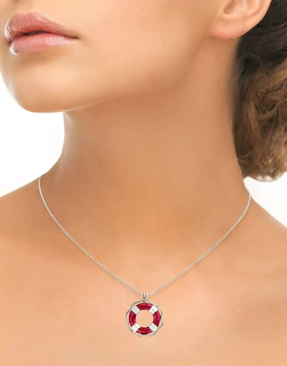 Red and White Buoy Sterling Silver Necklace. Sterling Silver