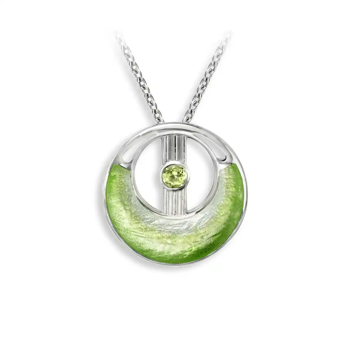 Green Cut-out Circle Necklace - Peridot. Sterling Silver