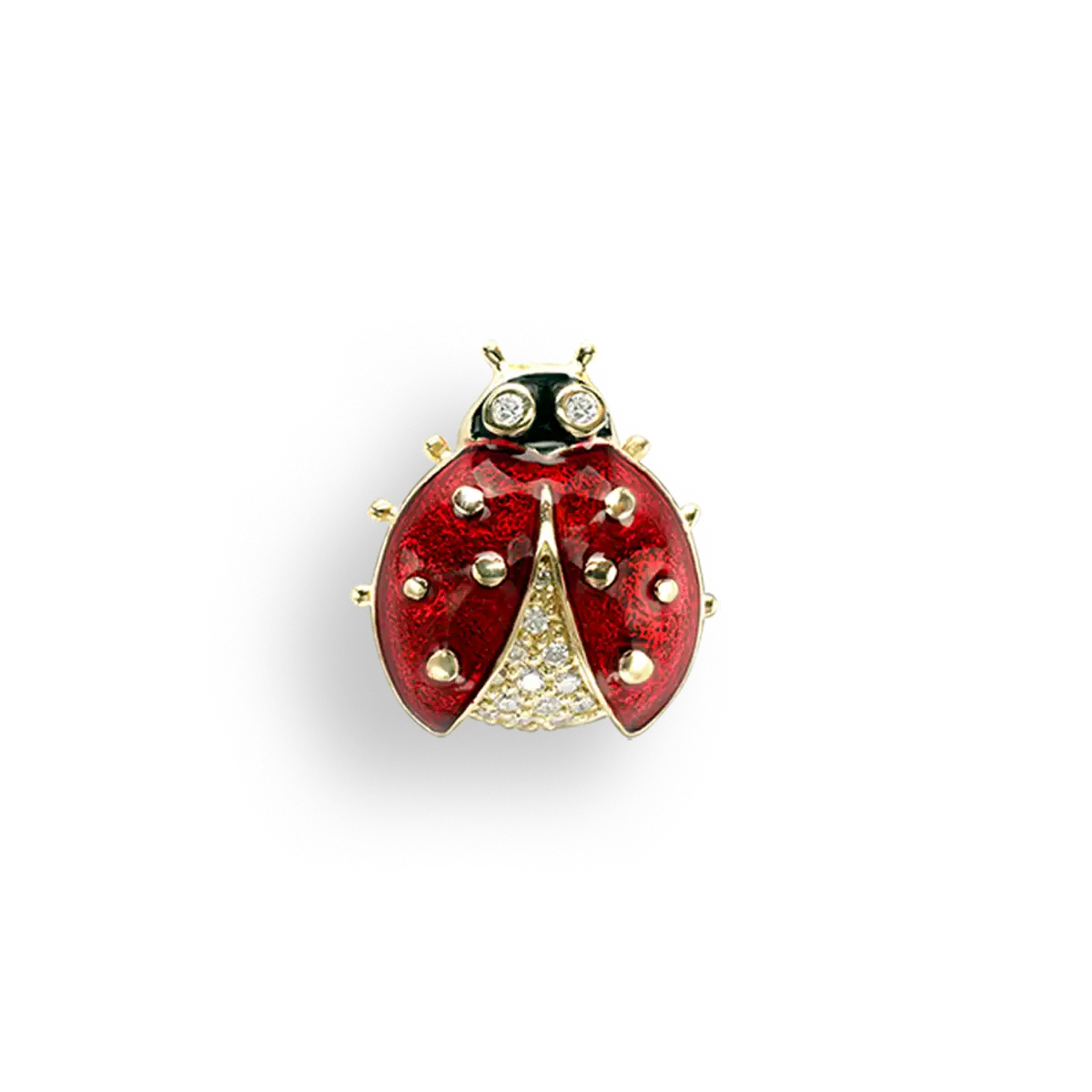 Silver.Gold Plated Red Ladybug Lapel Pin. -Diamonds