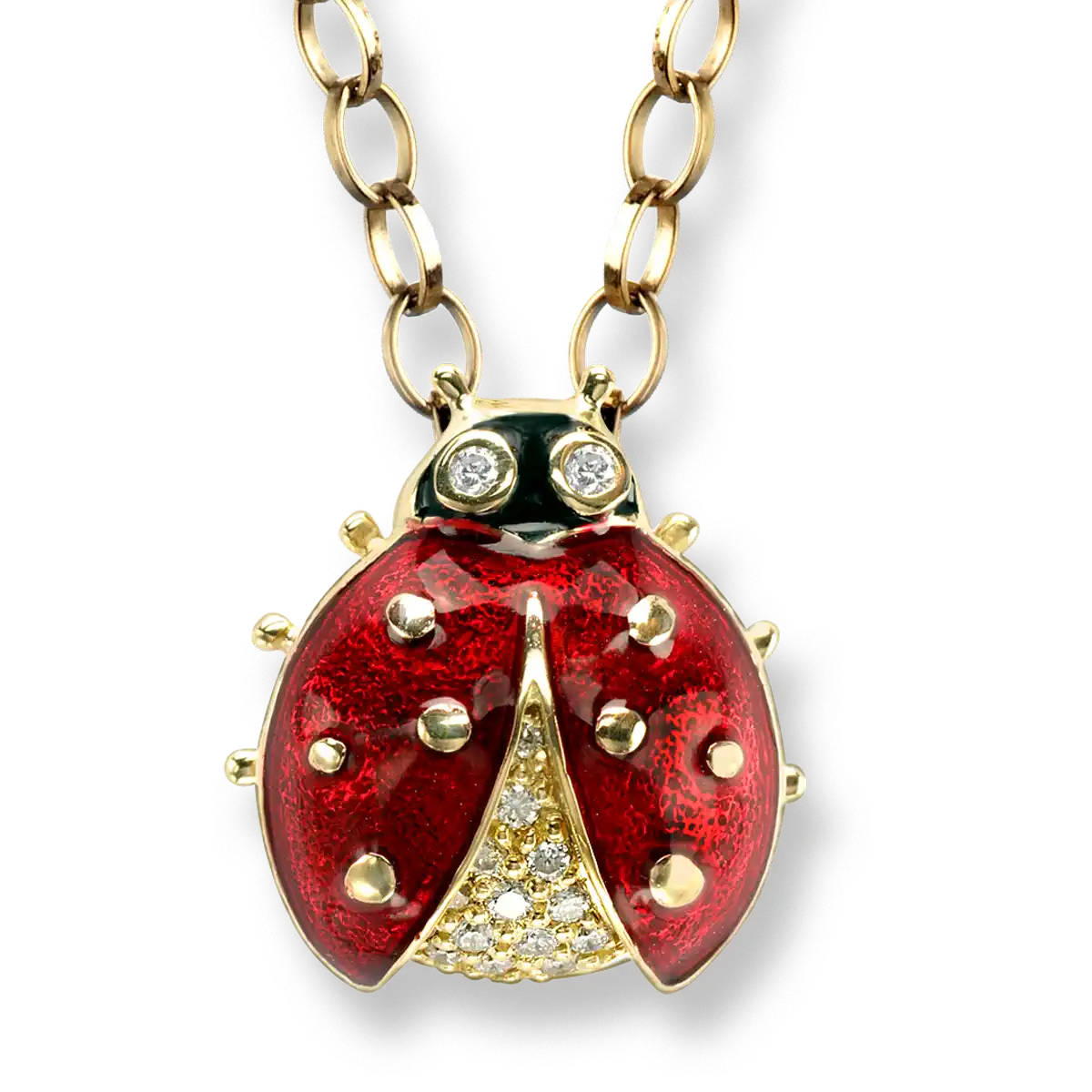/ Silver.Gold Plated Red Ladybug Lapel Pin. -Diamonds