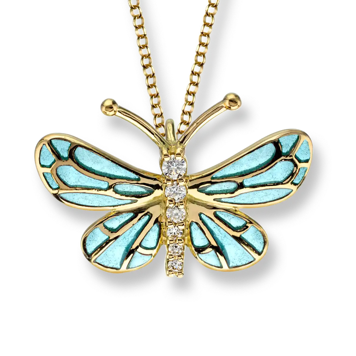 Silver.Gold Plated Turquoise Plique-a-Jour Butterfly Pendant -Diamond
