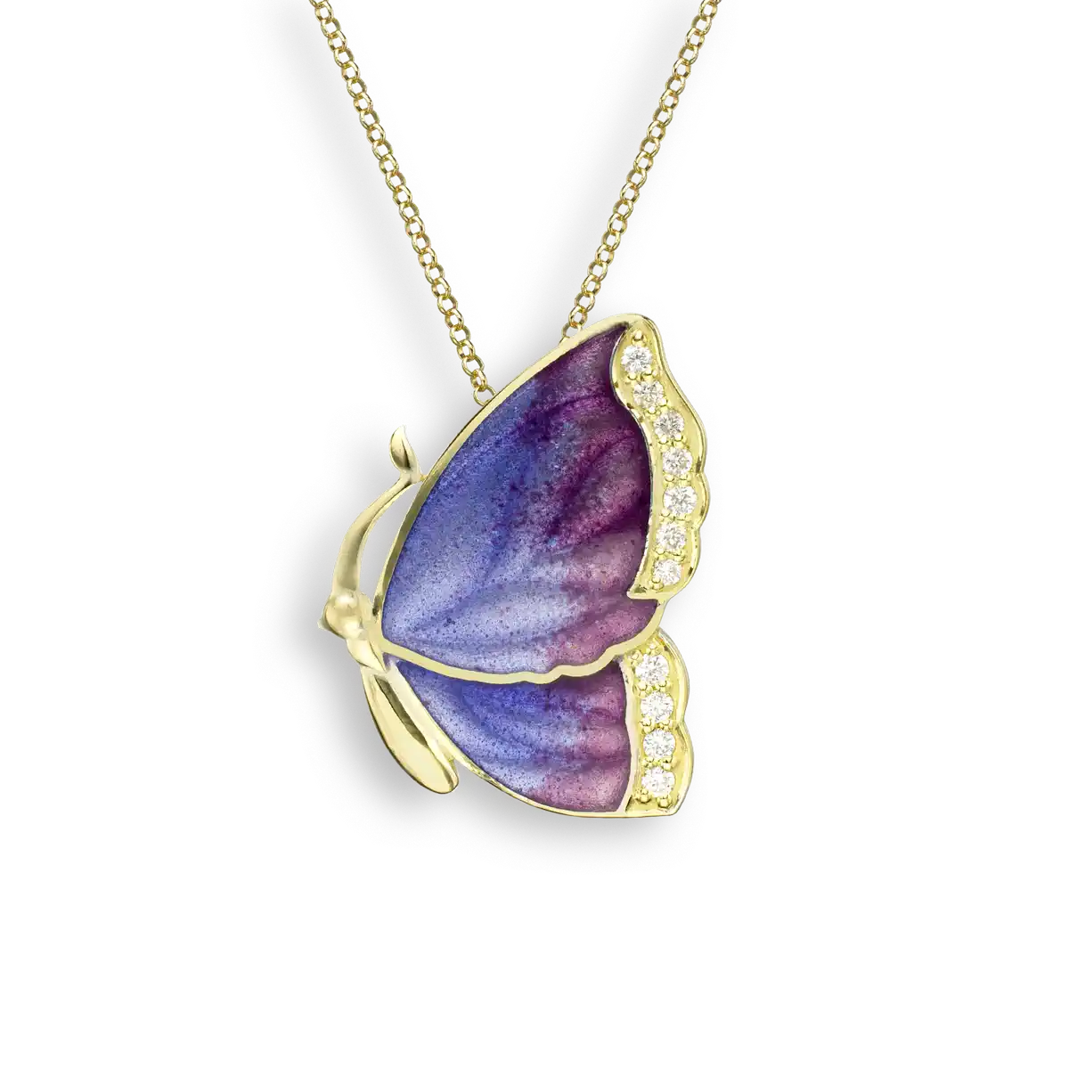 Silver.Gold Plated Pink Butterfly Pendant. -Diamond