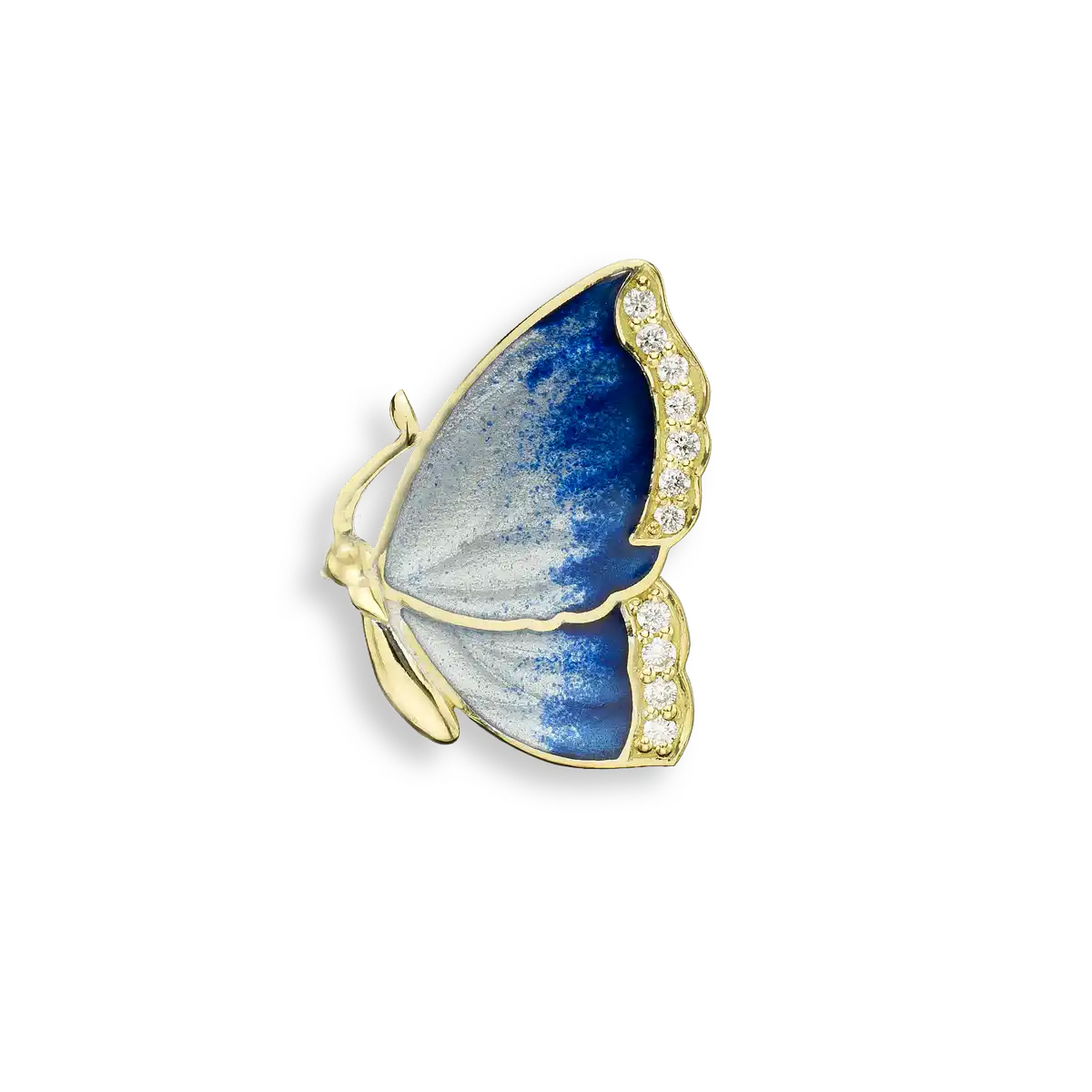 / Silver.Gold Plated Blue Butterfly Pendant. -Diamond