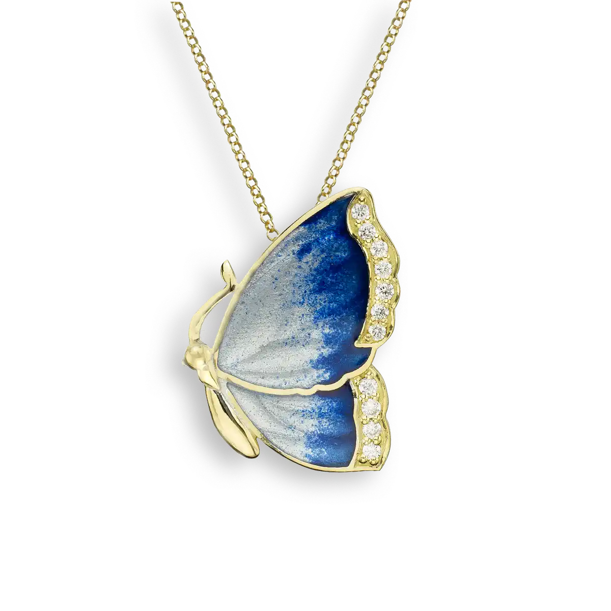 Silver.Gold Plated Blue Butterfly Pendant. -Diamond