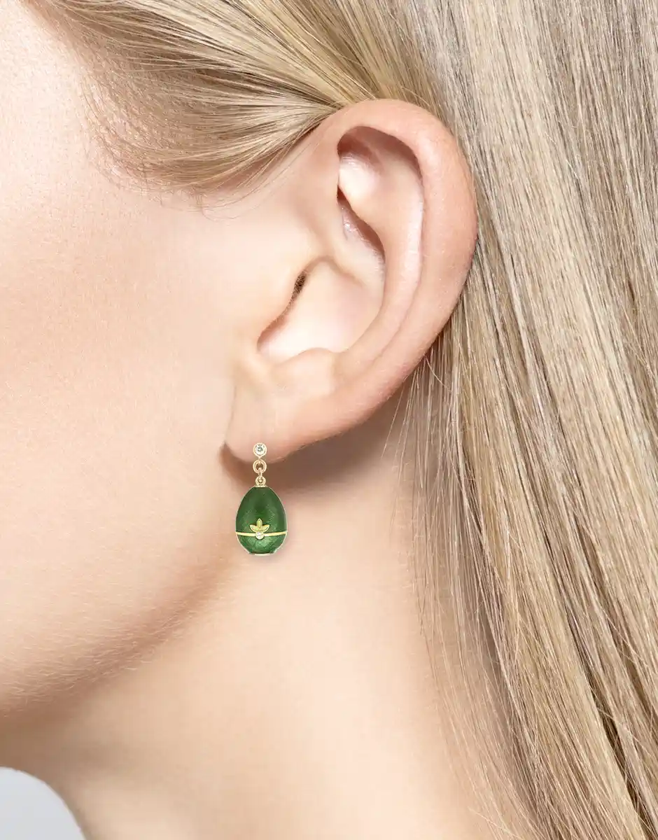 Silver.Gold Plated Green Egg Post Earrings.Diamond.