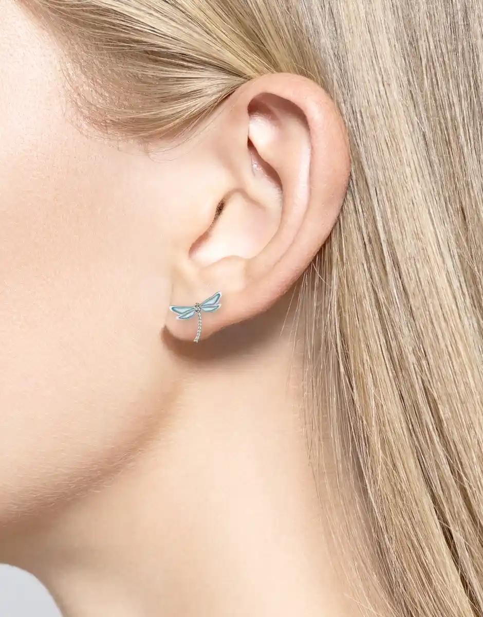 / Blue Plique-a-Jour Dragonfly Post Earrings.