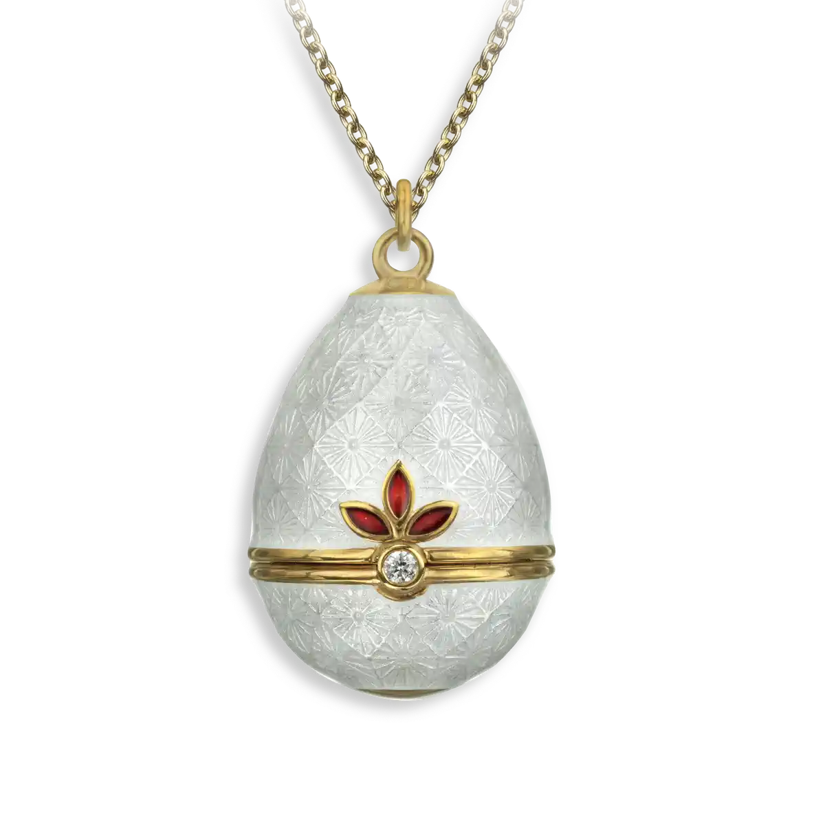 Opens.Silver.Gold Plated White Egg Locket with Heart Surprise. Diamond.