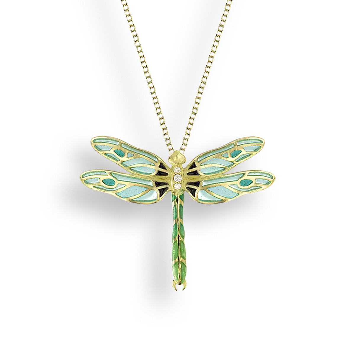 Green Plique-a-Jour Dragonfly Pendant. 18K -Diamond
